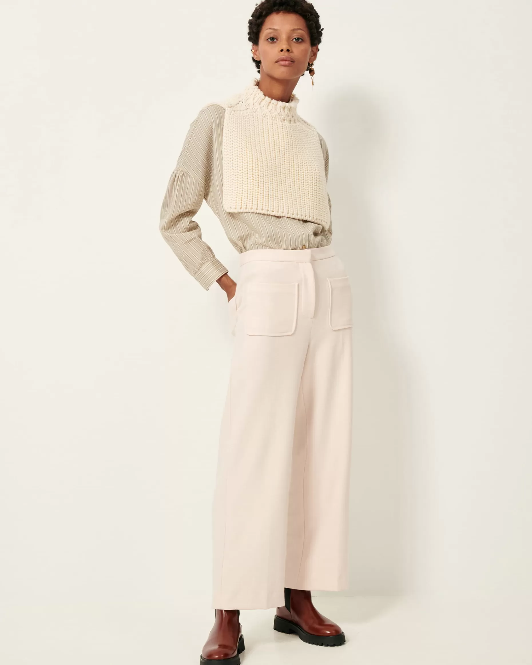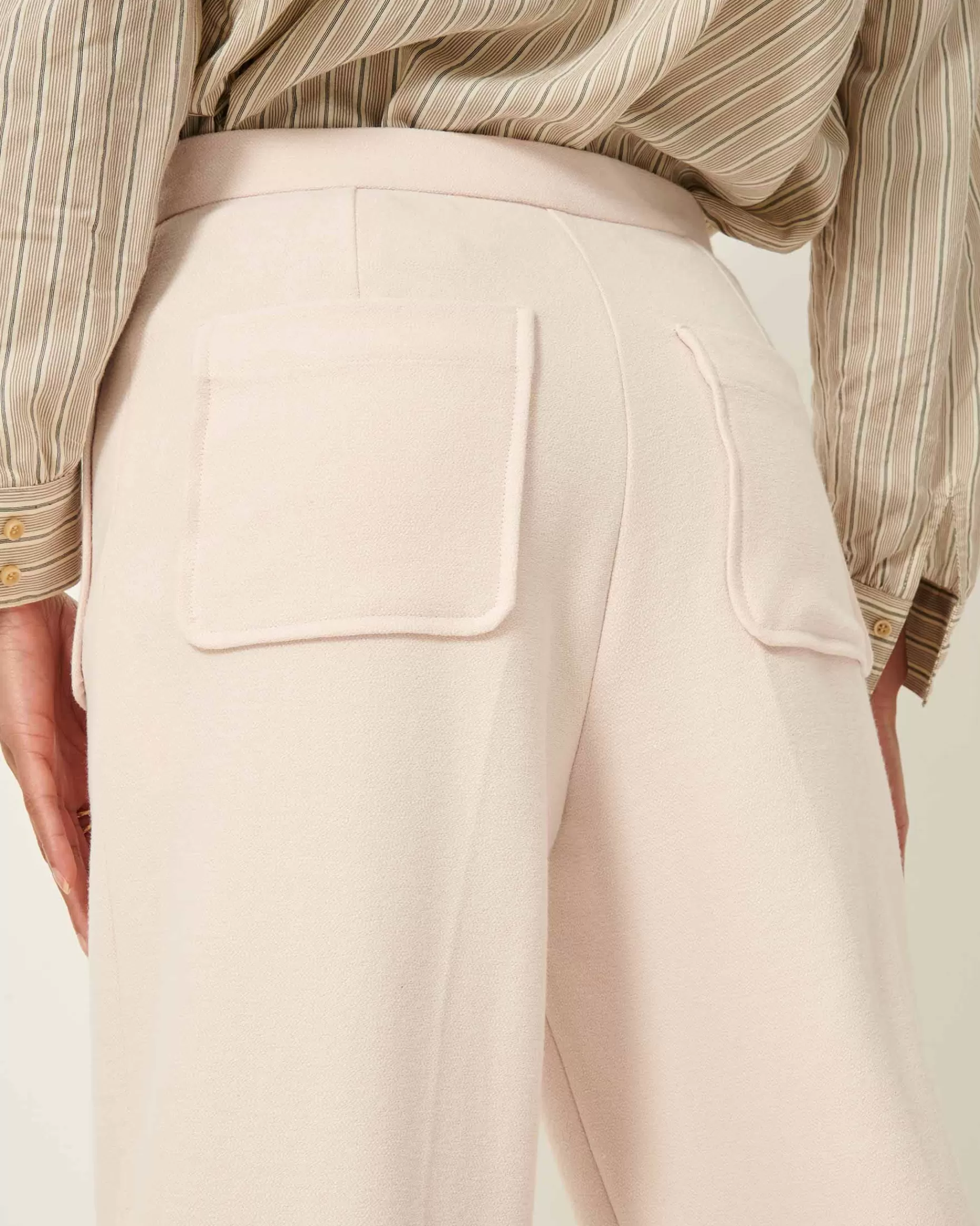 Pantalon droit à plis marqués en tricotine fluide, tissée au Portugal.