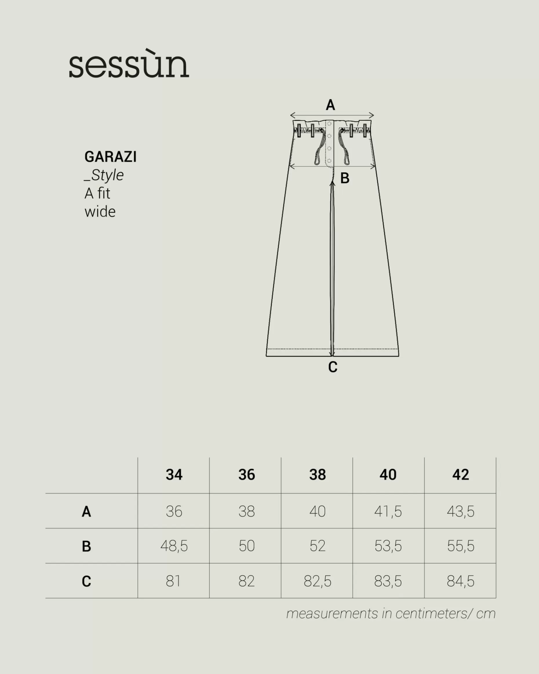 | Size | 34, 36, 38, 40, 42 |