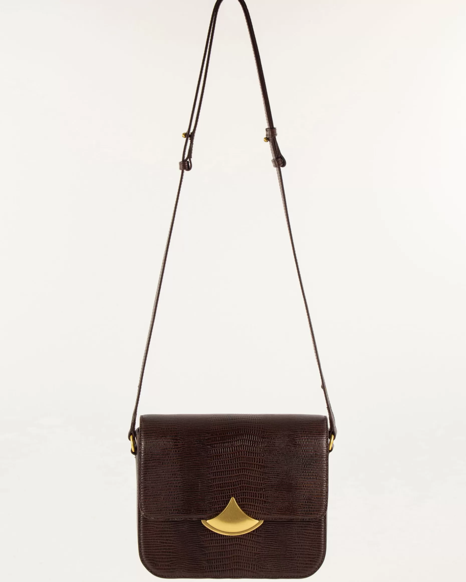 Sac boîte à deux compartiments en cuir de vache imprimé imitation lézard avec fermoir magnétique, développement exclusif Sessùn.