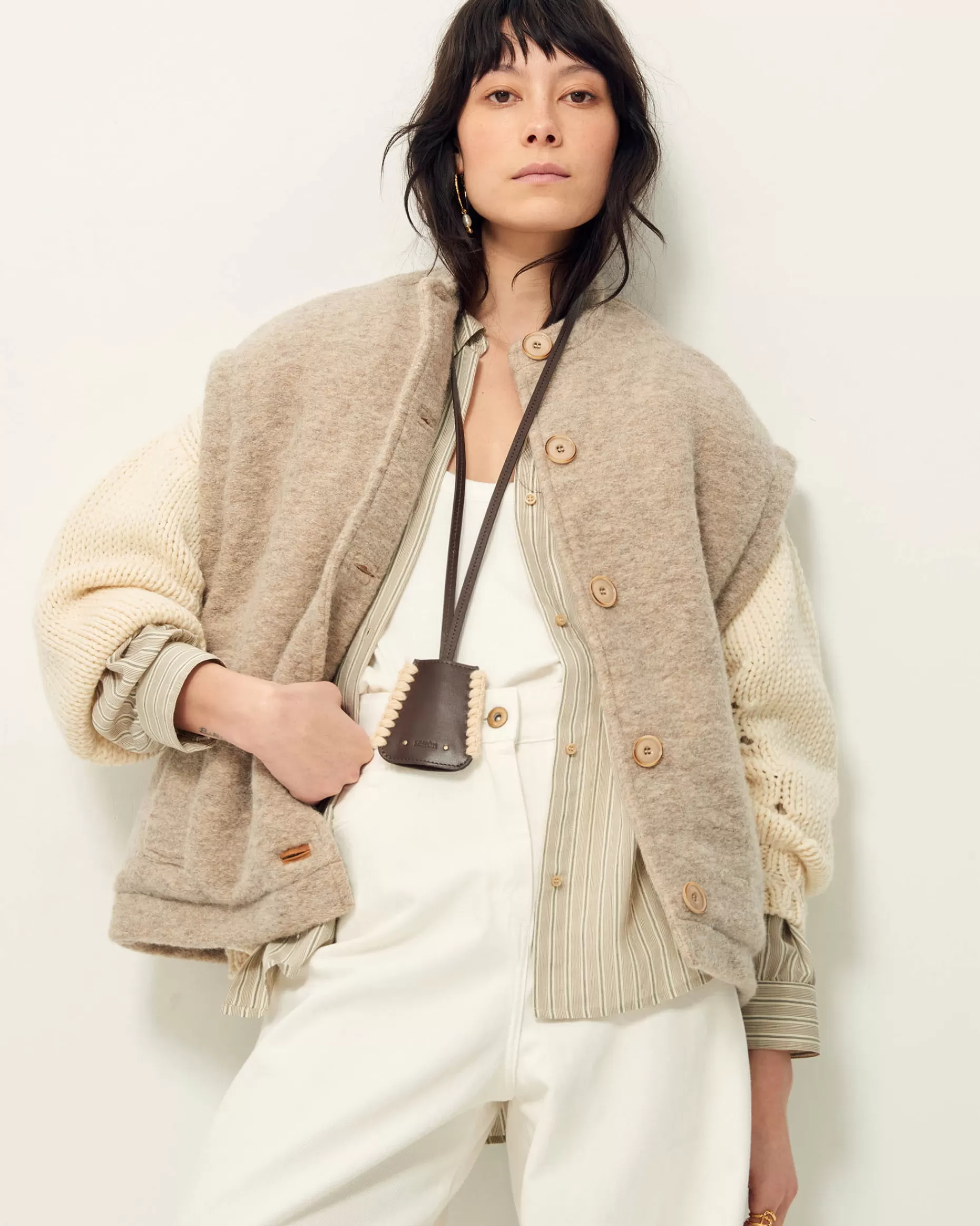 Porte clé cloche en cuir de vache tannage végétal brodé de laine.