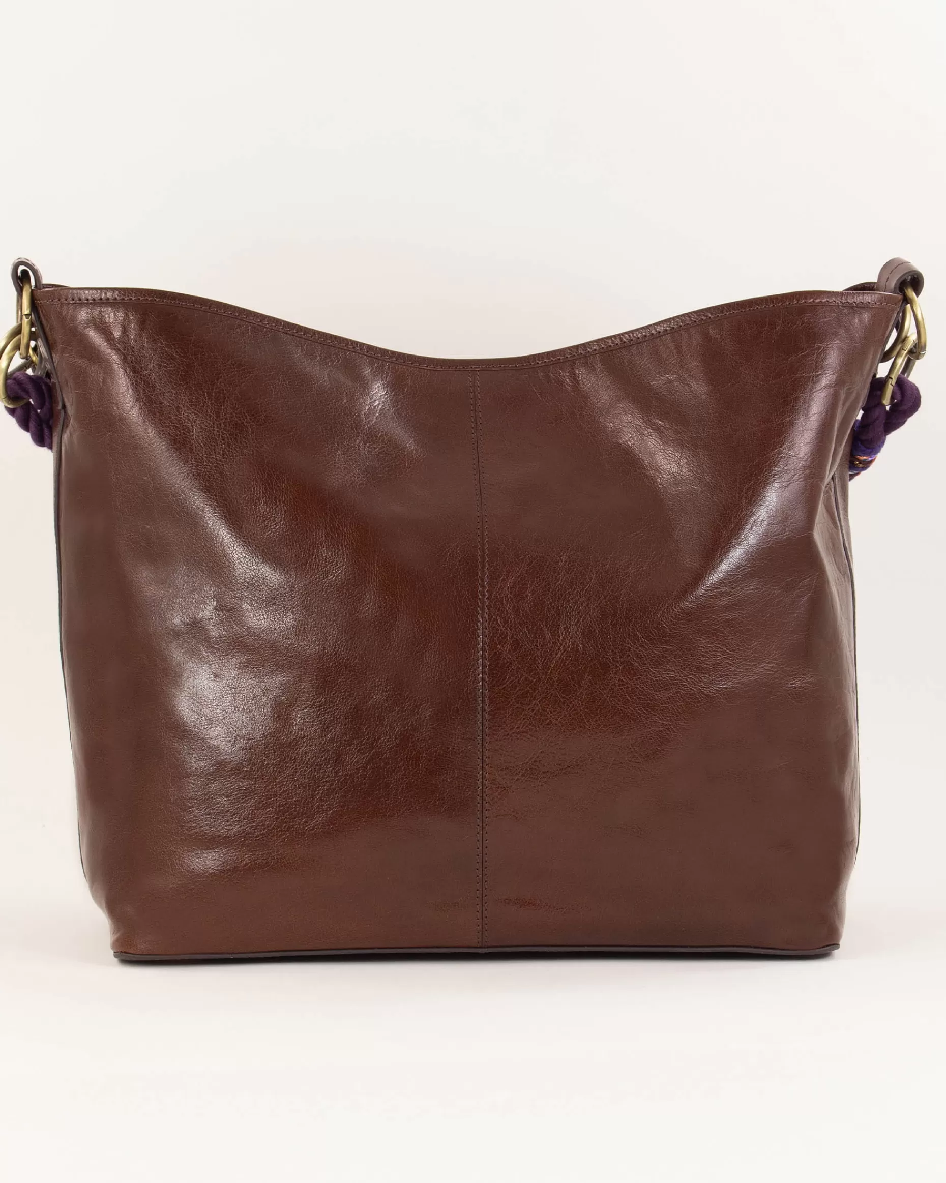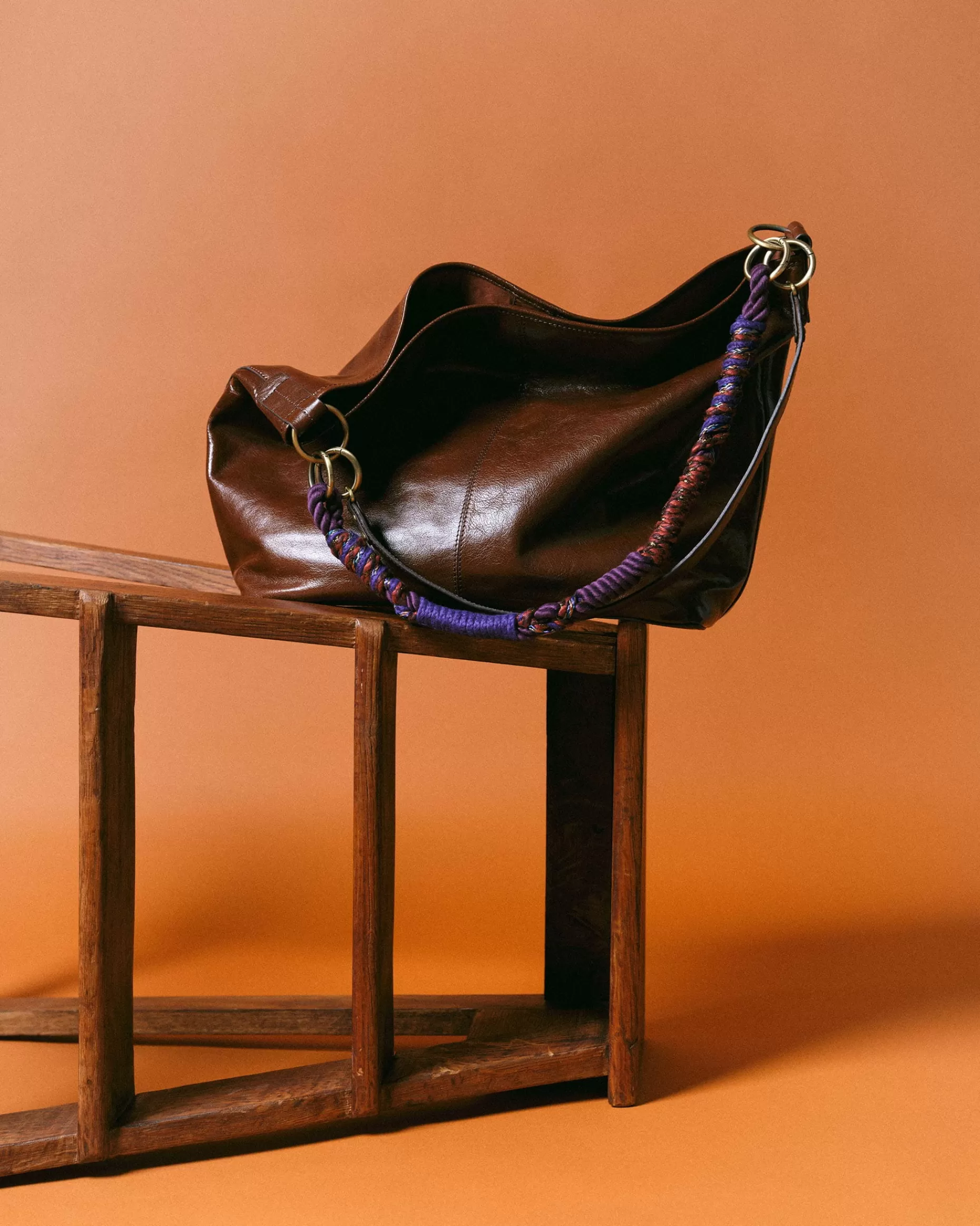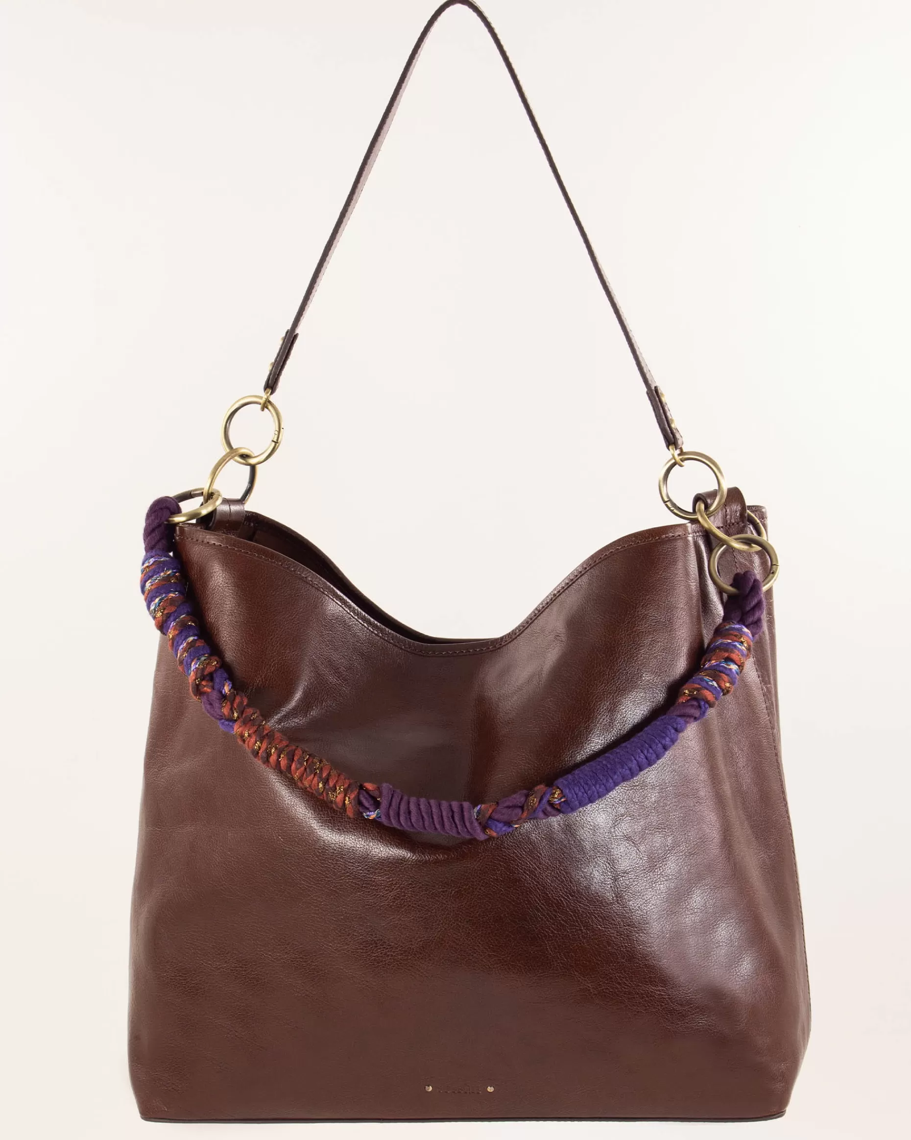 Anse fantaisie tressée de cordes coton et cordons lurex et anse cuir, amovibles.