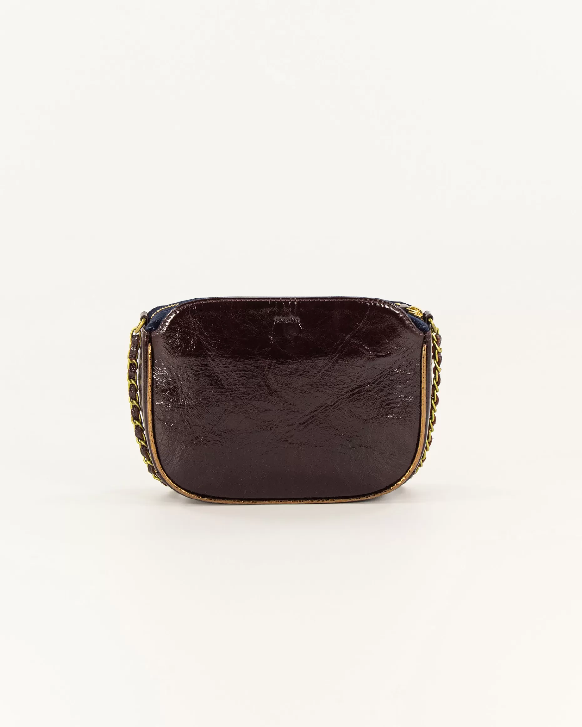 Sac mix matières matelassé surpiqué, motif exclusif Sessùn. Empiècements et détails en cuir de vache et cuir de chèvre suédé imprimé.