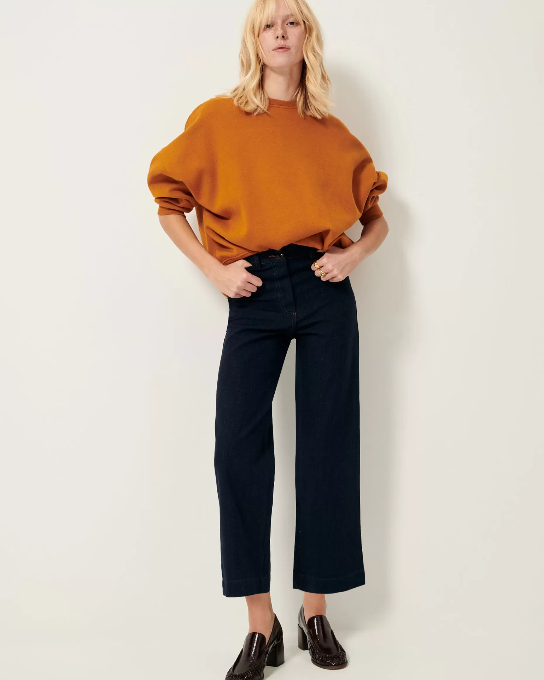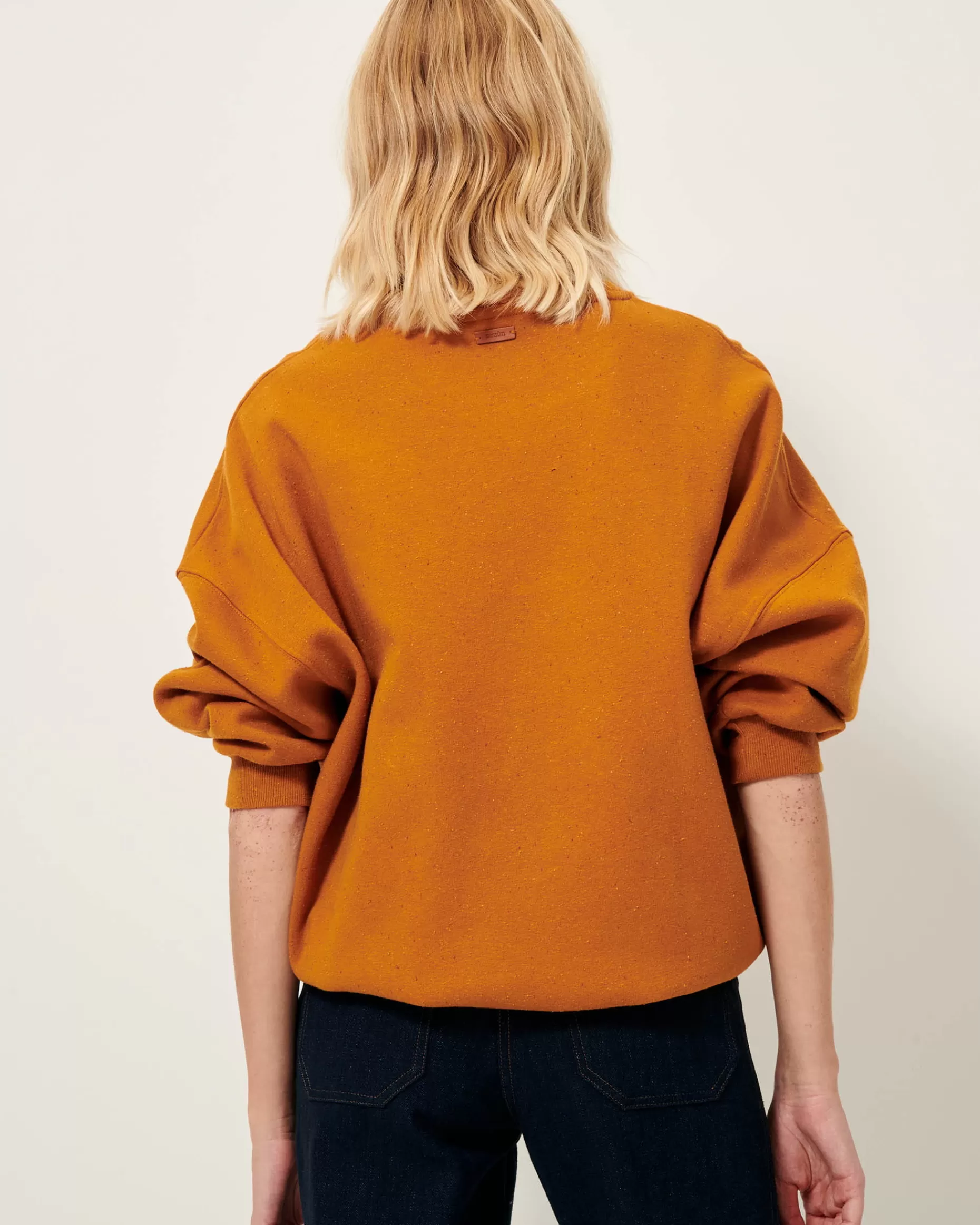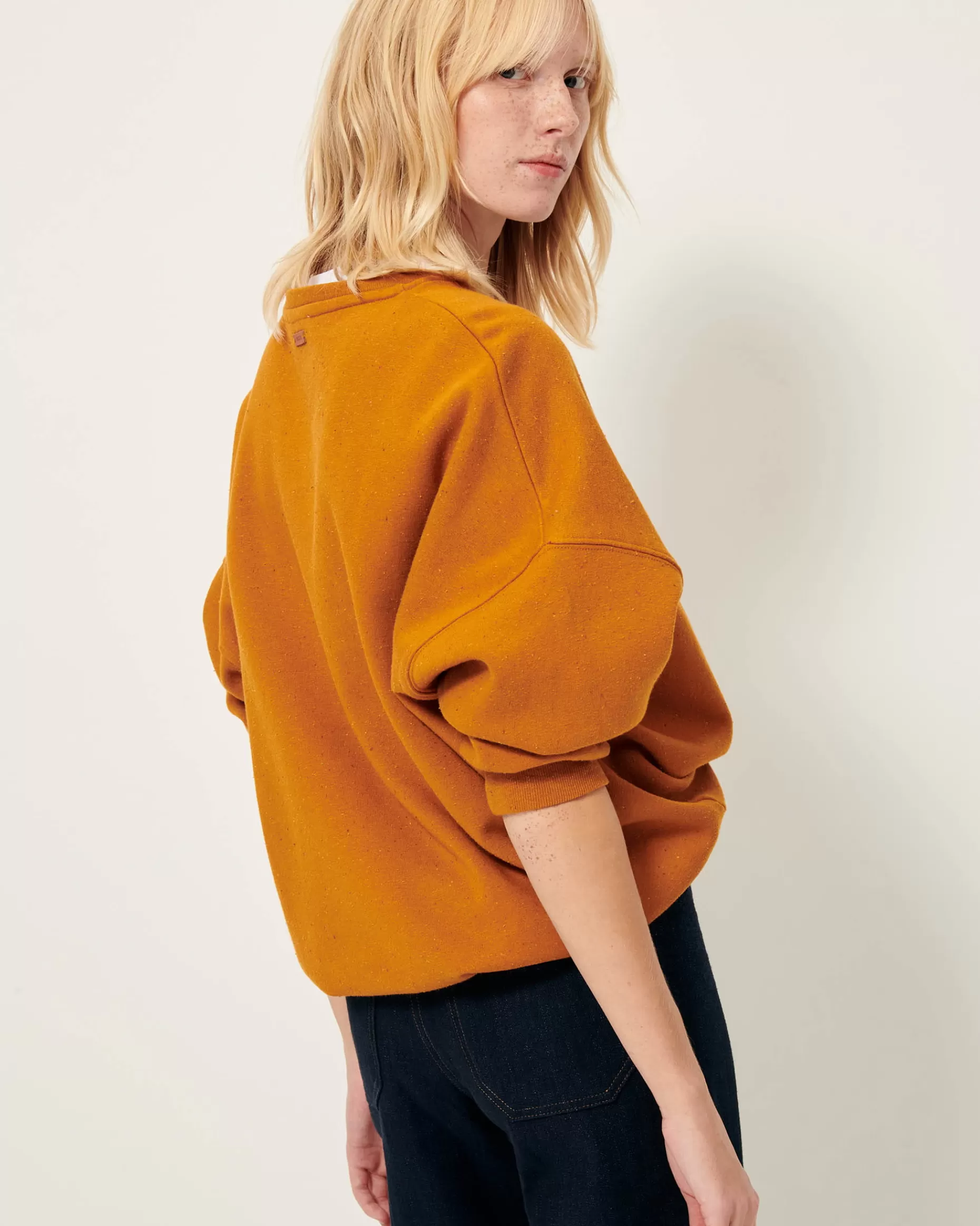 Sweat ample en molleton chiné boutonné confectionné au Portugal.